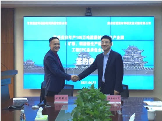 2021年4月21日,嘉峪關(guān)市年產(chǎn)105萬噸膠凝材料綠色產(chǎn)業(yè)園(礦粉、鋼渣粉生產(chǎn)線)項目舉行EPC合同簽約儀式。 甘肅藏建環(huán)保新材料科技有限公司(以下簡稱:甘肅藏建)董事長劉偉、總經(jīng)理巴桑次仁,湖南省建筑材料研究設(shè)計院有限公司(以下簡稱:湖南建材院)董事長兼總經(jīng)理晉欣然、常務(wù)副總經(jīng)理兼建材工程事業(yè)部總經(jīng)理粟道兵、總經(jīng)理助理兼建材工程事業(yè)部副總經(jīng)理吳春宏、建材設(shè)計分院院長朱玉巧、市場部副部長胡樂等領(lǐng)導(dǎo)參加簽約儀式。