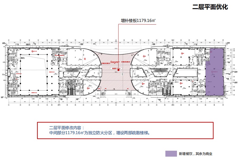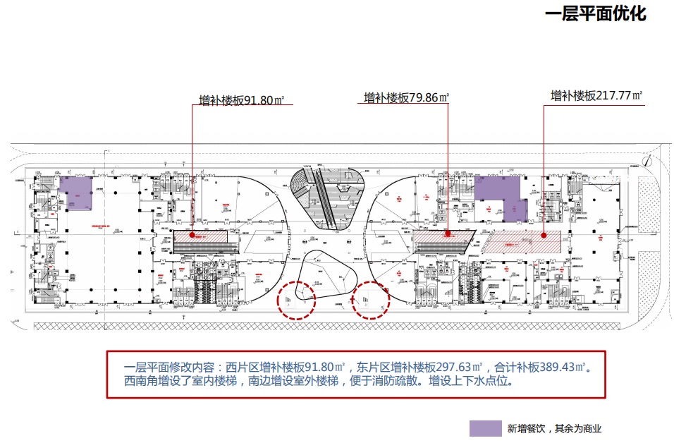 ③一~二層局部中庭封補(bǔ)樓板,增加商業(yè)人流的停駐面積(1796.47㎡)