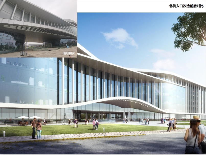 ①改造前后北側(cè)入口外立面效果對比: